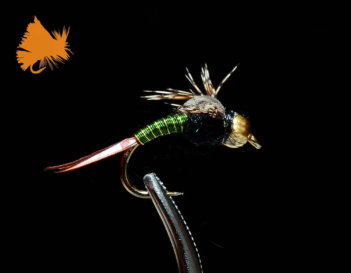 The Copper John imitates a variety of aquatic insects, including mayflies, caddisflies, and stoneflies. The fly’s body is wrapped in copper wire, which gives it a realistic segmented look, and the bead head imitates the thorax of the insect. The Copper John is effective in both still water and rivers, making it a versatile pattern.